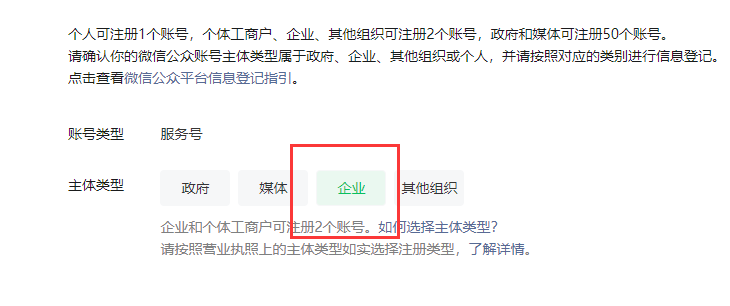 4、選擇賬號主體類型,政府選擇政府,企業就選擇企業,這里以企業為主