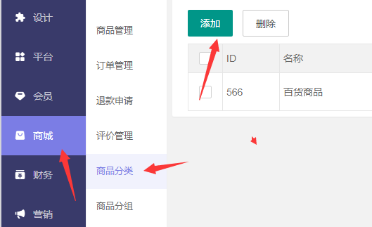 然后是產品管理,首先是可以添加分類