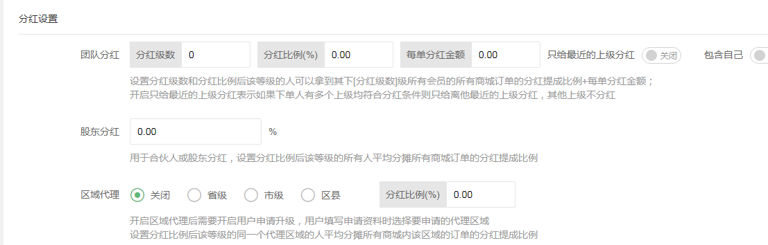 分紅 區域代理,這個根據自己需求設置,一般懂的人才會用,分銷模式,可以不用這個